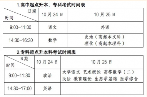 (一)考試時(shí)間2020年全國(guó)成人高校招生統(tǒng)一考試時(shí)間見(jiàn)下表: