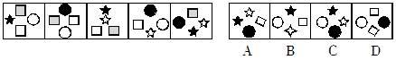 每個圖形總數(shù)量的恒定,前五個圖出現(xiàn)的六種圖形的數(shù)量分別為黑方塊四個、白方塊四個、黑星星三個、白星星三個、黑圓三個、白圓三個,照此思維,第六圖應為黑星星、白星星、黑圓、白圓各一個,對照選項,C項符合,可得題解。