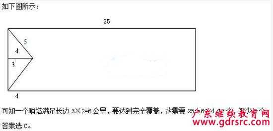 69、現要在一塊長25公里、寬8公里的長方形區域內設置哨塔,每個哨塔的監視半徑為5公里。如果要求整個區域內的每個角落都能被監視到,則至少需要設置多少個哨塔?
