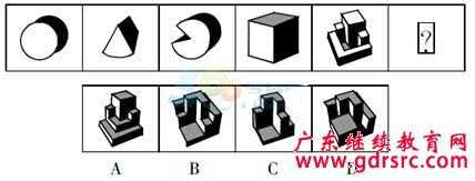 【答案解析】每組第二個和第三個圖形組合構成第一個圖形。第二組中第二個圖形與第三個圖形應該凹凸相合,觀察對比,應選擇B。