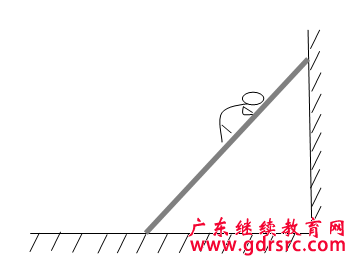 示例:建筑工人爬高時,常常需要借助梯子,如圖所示。梯子一端在地面,一端靠在墻上,保持靜止不動。假如墻面光滑,建筑工人沿梯子勻速向上攀爬的過程中,下列說法中正確的是( )。
