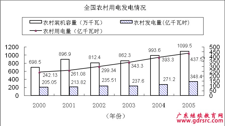 2、根據(jù)上圖,下列關(guān)于我國農(nóng)村用電發(fā)電情況的表述,錯誤的一項是( )。