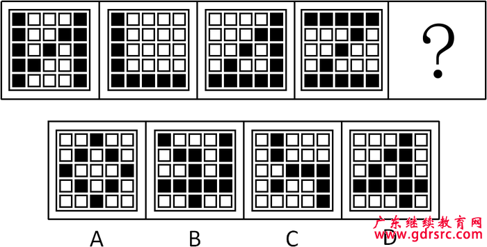 方法二:本題中每幅圖黑色方塊都只在5×5宮格的最外圈和對(duì)角線位置出現(xiàn),排除BCD。