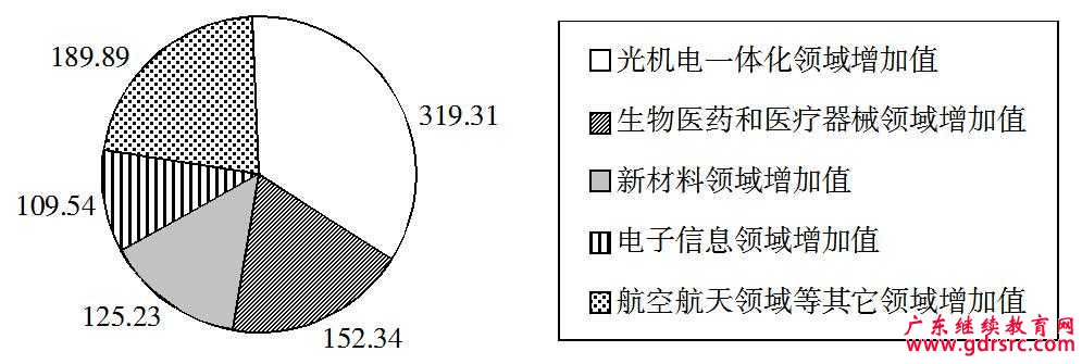 高新技術(shù)產(chǎn)業(yè)各領(lǐng)域增加值餅形圖(單位:億元)