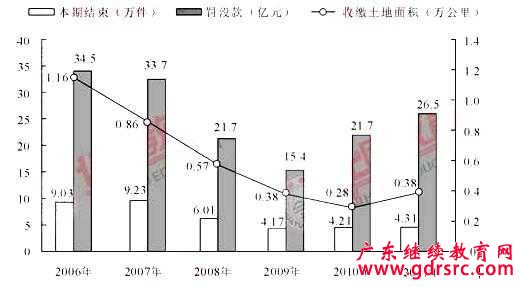 121.與2006年相比,2011年全國(guó)收繳土地面積約減少了: