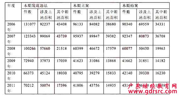 2006~2011年我國(guó)違法用地案件查處情況(一)