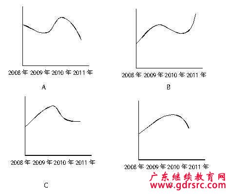 133.2008~2011年農(nóng)民工從事交通運(yùn)輸、倉(cāng)儲(chǔ)和郵政業(yè)的比重變化趨勢(shì)符合: