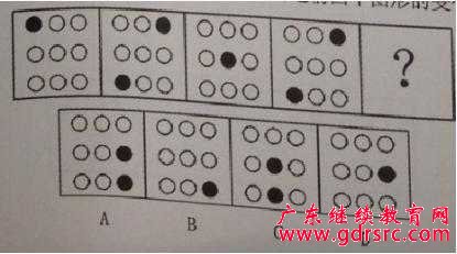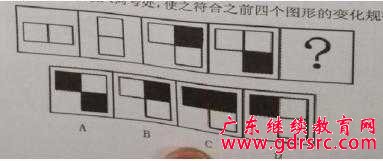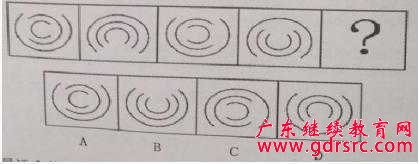 79( 單選題 )請選擇最適合的一項填入問號處,使之符合之前四個圖形的變化規(guī)律。()