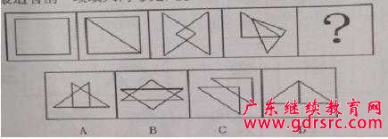 81( 單選題 )請選擇最適合的一項填入問號處,使之符合之前四個圖形的變化規(guī)律。()
