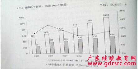 96.2005年-2010年,A城市的進(jìn)出口有( )年呈現(xiàn)貿(mào)易順差。