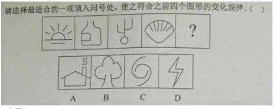 【解析】 一條式從左向右看,圖形周邊中斷的個(gè)數(shù)呈現(xiàn)等差規(guī)律,4、3、2、1、0,所以選擇圖形周邊沒(méi)有斷開(kāi)的A