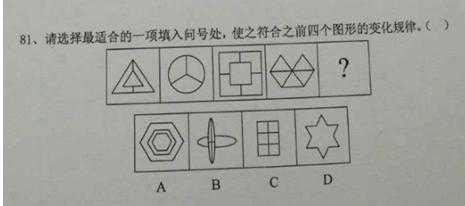 【解析】 題干中所有圖形封閉面的個(gè)數(shù)是常數(shù)列,都是一個(gè)面,選項(xiàng)中只有D封閉面的個(gè)數(shù)是一個(gè)。選項(xiàng)A封閉面?zhèn)數(shù)是兩個(gè),選項(xiàng)B、C沒(méi)有封閉面。