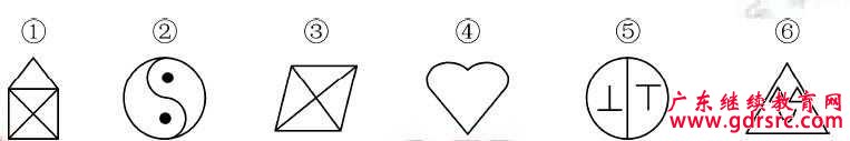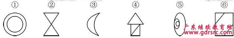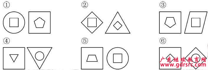 (答案:B。例題中,①、④、⑤都是一個圖形,②、③、⑥都是由內外相似的兩個圖形組成)