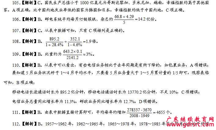 110.【解析】B。從表中可以看出,有些電信業務相比于去年同期是有所下降的,如包裹業務,A項錯誤;