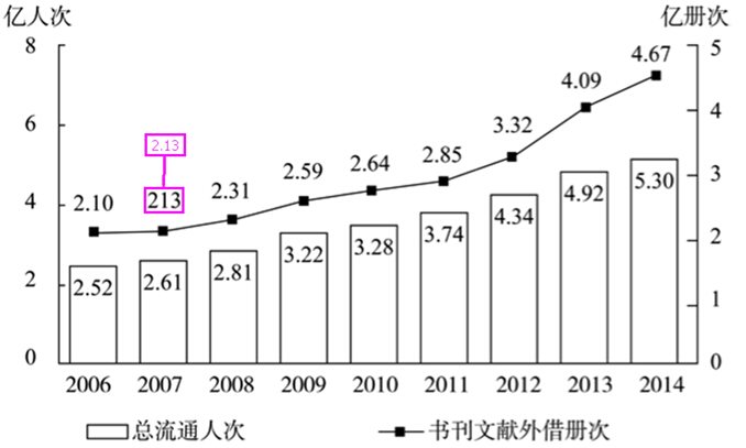 A.“十一五”期間全國公共圖書館總流通人次超過15億人次