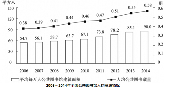 B.2014年平均每個公共圖書館擁有20多個閱覽室座席