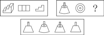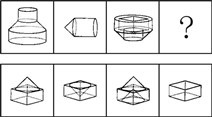 80. 下列中的立體圖形①是由立體圖形②、③和④組合而成,下列哪一項能夠填入問號處?