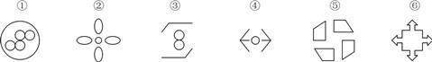 81. 把下面的六個圖形分為兩類,使每一類圖形都有各自的共同特征或規律,分類正確的一項是: