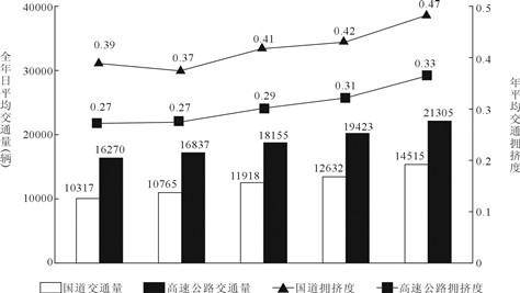 2008—2012年全國國道與高速公路日平均交通量及年平均交通擁擠度