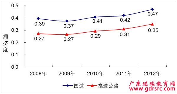 圖8 2008-2012年國道、高速公路年平均交通擁擠度