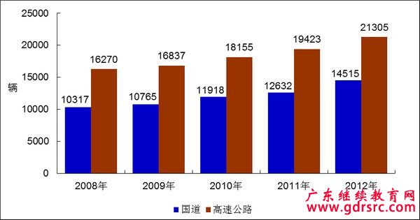 全國國道網機動車 全年日平均交通量為14515輛(當量標準小客車,下同),比上年增長4.4%。全年國道網車流量較大的地區主要集中在北京、天津、上海、江蘇、浙江、廣 東和山東,上述地區國道網的日平均交通量均超過2萬輛。全國國道網日平均行駛量為244883萬車公里(當量標準小客車,下同),增長6.9%。河北、江 蘇、浙江、山東、河南、廣東的國道網日平均行駛量均超過10000萬車公里。全國國道網年平均交通擁擠度為0.47,增長2.5%。北京、天津、河北、山 西、上海、浙江、湖北、廣東的國道年平均擁擠度均超過0.6。其中,國家高速公路日平均交通量為22181輛,日平均行駛量為148742萬車公里,年平 均交通擁擠度為0.37,分別增長6.4%、13.6%和5.0%;普通國道日平均交通量為10845輛,日平均行駛量為111164萬車公里,年平均交 通擁擠度為0.64,分別增長3.3%、2.7%和0.3%。