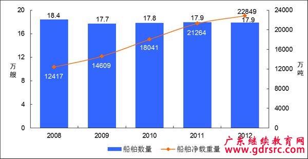 圖9 2008-2012年全國水上運輸船舶擁有量