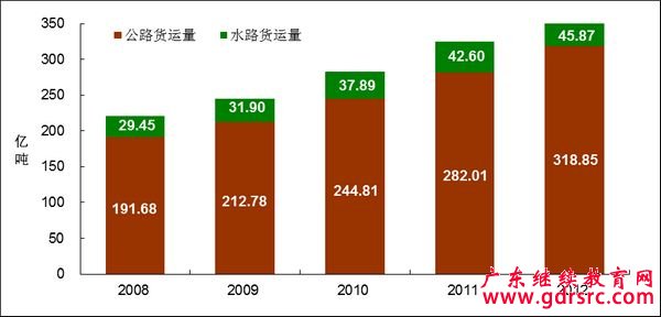 圖11 2008-2012年全國公路、水路貨運量