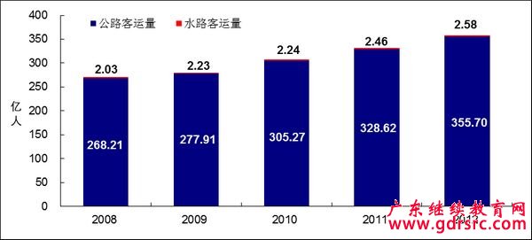 圖10 2008-2012年全國公路、水路客運量