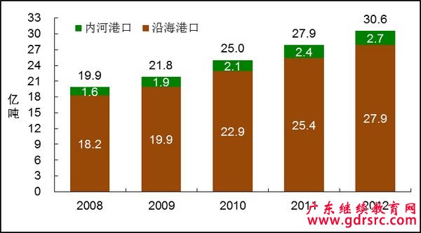 圖12 2008-2012年全國港口貨物吞吐量