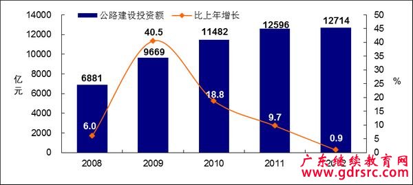 圖19 2008-2012年公路建設(shè)投資額及增長(zhǎng)速度