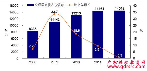 圖18 2008-2012年交通固定資產(chǎn)投資額及增長(zhǎng)速度