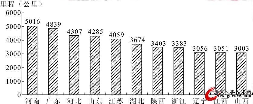 127.2010年底,高速公路里程超過全國總里程5%省份有幾個?