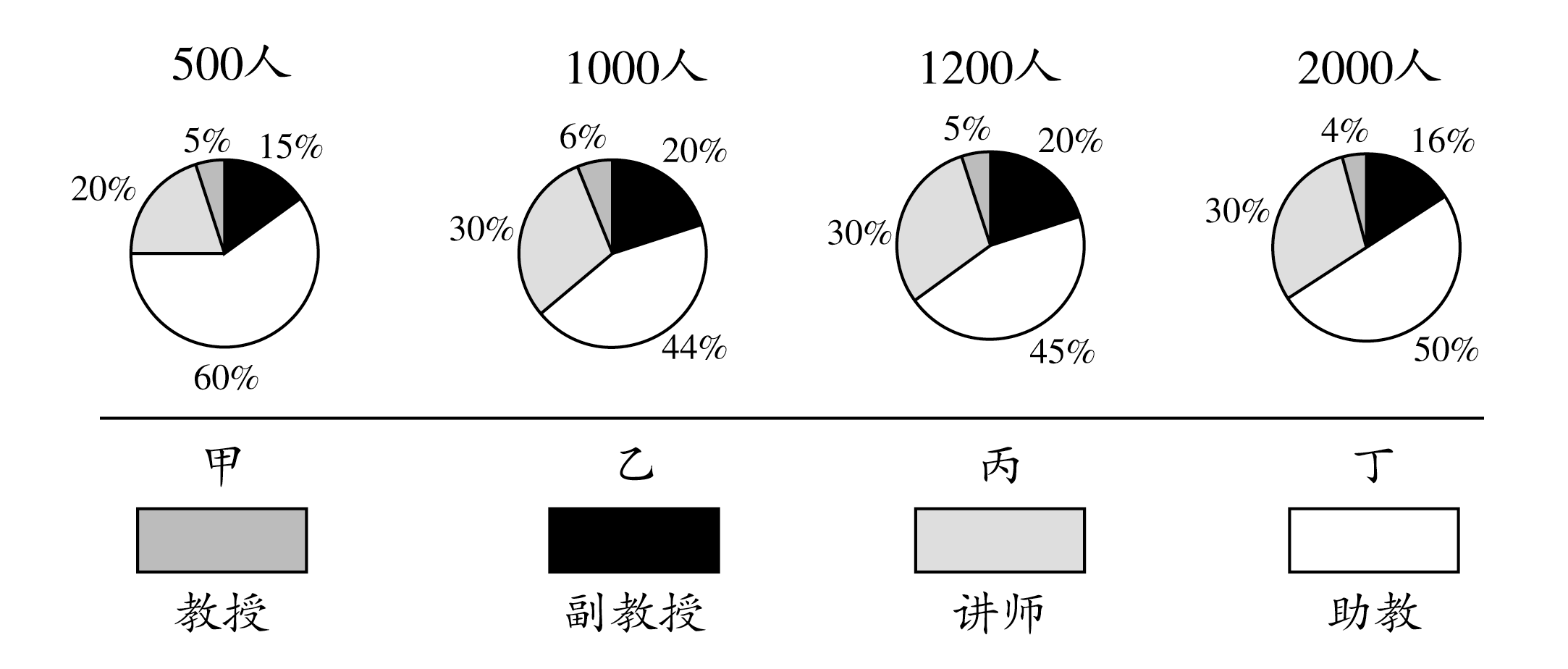 39.甲校教授與副教授、助教、講師三種職稱教師人數的構成比例關系為( )。