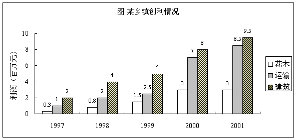 2.該鄉鎮2001年度三個行業的利潤總和與97年以來花木行業的利潤總和相比,情況如何?
