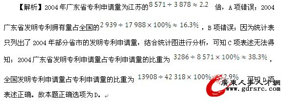 【解析】2004年,粵、魯、蘇、浙、滬等五地發明專利擁有量之和占全國的