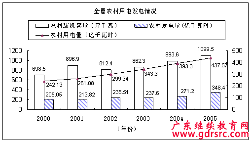 2、根據(jù)上圖,下列關(guān)于我國(guó)農(nóng)村用電發(fā)電情況的表述,錯(cuò)誤的一項(xiàng)是( )。