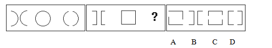 答案:D(因為只有D能使兩套圖形具有相似性,僅僅元素不同,一個是半圓,一個是半個正方形,但兩組圖形中元素的排列規律完全相同,故選D)