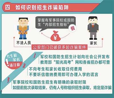 今年深入實施陽光招生工程,要求加大招生信息公開力度,確保軍隊生長干部招生工作全程公開透明。主要有3個方面的改進:一是搭建信息公開平 臺。主要是依托國家教育部陽光高考網(Gaokao.Chsi.com.cn)、中國軍網(www.81.cn)、軍隊人才網 (www.81rc.mil.cn)建立招生宣傳網絡平臺,實現招生政策信息的及時發布及關鍵環節的信息查詢。二是開展多種形式宣傳活動。在軍地有關媒體 上播發招生政策、院校情況、學科發展等內容。5月中旬,軍區級單位指導省軍區和招生院校開展“軍隊招生宣傳月”活動,組織招生政策咨詢會,依托部分重點中 學建立生源基地,及時掌握優質生源情況,為考生填報志愿提供信息咨詢。三是暢通信息咨詢及下載渠道。省軍區及招生院校開辟網絡專欄、開通咨詢電話,提供招 生政策、計劃,以及軍檢安排等信息咨詢,政治考核表和軍檢工作手冊等文件可通過各省級高校招生辦公室官方網站下載,軍檢結果可通過網絡查詢,進一步減少工 作環節、增加招生工作透明度。四是加大招生全程輿論監督。組織軍隊新聞媒體對省軍區、院校年度招生情況進行跟蹤采訪報道,并對新生復查復試、入學軍訓、新 生教育等工作進行全方位宣傳,將招生工作全程納入輿論監督之中。