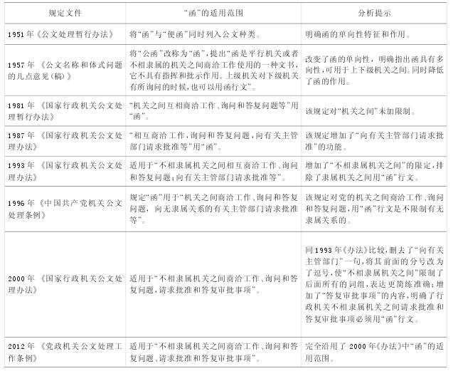 表1:“函”適用范圍的演變