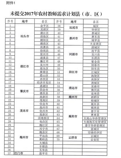 (一)請各市教育局將本通知盡快轉(zhuǎn)發(fā)至縣(市、區(qū))教育局,積極組織縣(市、區(qū))教育局參加供需見面會和雙選會。根據(jù)《廣東省教育廳關(guān)于報送2017年教師需求計劃和上崗?fù)速M人員材料的通知》(粵教師函〔2017〕7號),各地的教師崗位需求計劃和招聘方案應(yīng)經(jīng)當(dāng)?shù)卣途幹啤⑷松绮块T審核,并在供需見面會和雙選會上執(zhí)行。請有關(guān)縣(市、區(qū))教育局與會時公布教師公開招聘方案;尚未出臺招聘方案的,應(yīng)明確招聘崗位和人數(shù)以及招考時間,并應(yīng)做好相關(guān)準(zhǔn)備工作。未按粵教師函〔2017〕7號文件提交農(nóng)村教師需求和免費師范生需求的縣(市、區(qū))(附件1),在與當(dāng)?shù)鼐幹啤⑷松绲炔块T溝通后,須于3月31日前按附件2的格式報送農(nóng)村教師需求,按附件3的格式報送免費師范畢業(yè)生需求。已報送需求計劃的縣(市、區(qū)),如有新的教師招聘需求計劃的,請及時將有關(guān)信息報省教育廳師資管理處。