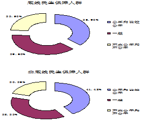 從調查可知,社會事業的滯后,使得底層人群社會公平感正在喪失,對社會的不滿情緒也在漸增。以 2013年廣東調查數據為例,在底線民生保障人群中,對社會持公平或比較公平的人數占比為36.9%,低于非底線民生保障人群占比的4.58個百分點。與 此同時,底線民生保障人群對社會持不太公平和不公平的人數的占比也高于非底線民生保障人群3.21個百分點,這說明底線民生保障人群對社會公平感較低。而 且,不公平感正在彌漫到社會各個群體,有超過2成的人群已對社會公平感漸失感知(見下圖)。
