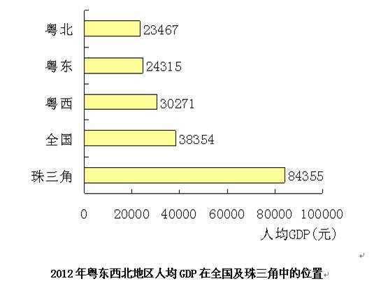 粵東西北地區既是一個地理概念,它是指廣東省除珠三角地區之外的所有地區,包括粵東地區(汕頭、汕尾、潮州和揭陽)、粵西地區(湛江、茂名、陽江)和粵北地區(韶關、河源、梅州、清遠和云浮)等共12個市;同時也是一個發展概念, 粵東西北地區也指廣東的欠發達地區。改革開放以來,由于觀念、區位、政策、資源等方面的差異,粵東西北地區與珠江三角洲的發展水平的差距有所擴大。雖然近 年來粵東西北地區的經濟增長率開始超過珠江三角洲,但由于其發展基數低、發展層次薄弱,在經濟總量和比重上依然遠低于珠江三角洲。因此,從整體來看,粵東 西北地區屬于廣東的欠發達地區,而且也是廣東區域經濟社會發展不平衡的關鍵所在。