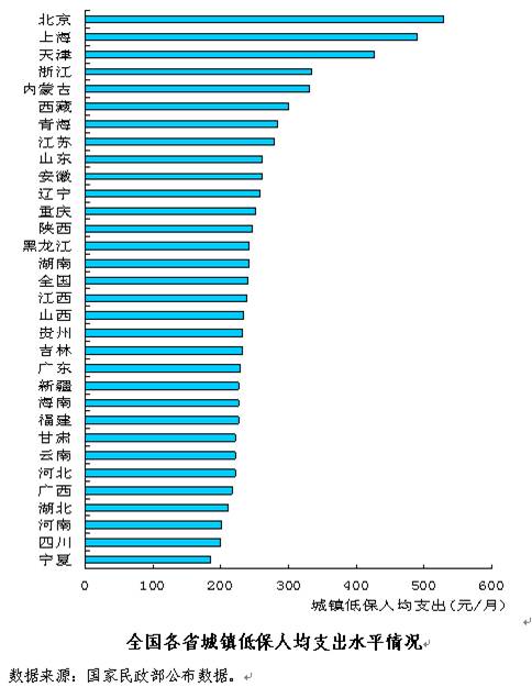 此外,從省域比較來看,廣東社會事業發展水平的落后性也十分明顯,以城鎮低保支出水平為例(見下圖)。