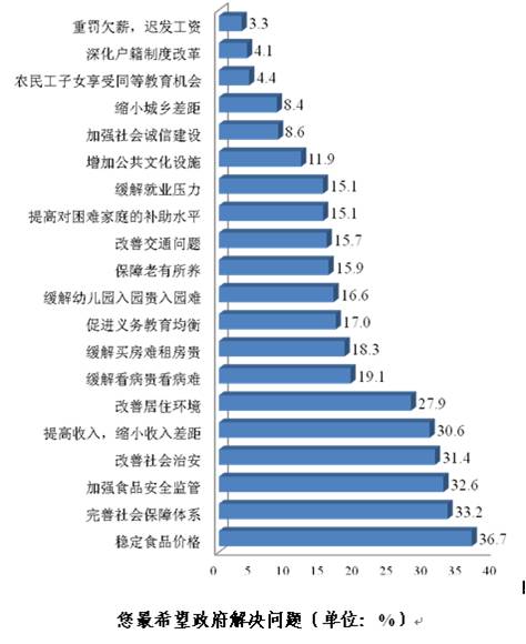 三是更高層次的民生需求正在日益凸顯。在基本民生問題基本得到滿足之后,渴求更高層次的公共服務,渴求平安、參與、公平等更高層次的民生需求變得更加迫切(見下圖)。