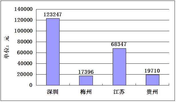 2012年深圳、梅州、江蘇、貴州人均GDP