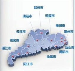 山區(qū):韶關、河源、梅州、 清遠、云浮。
