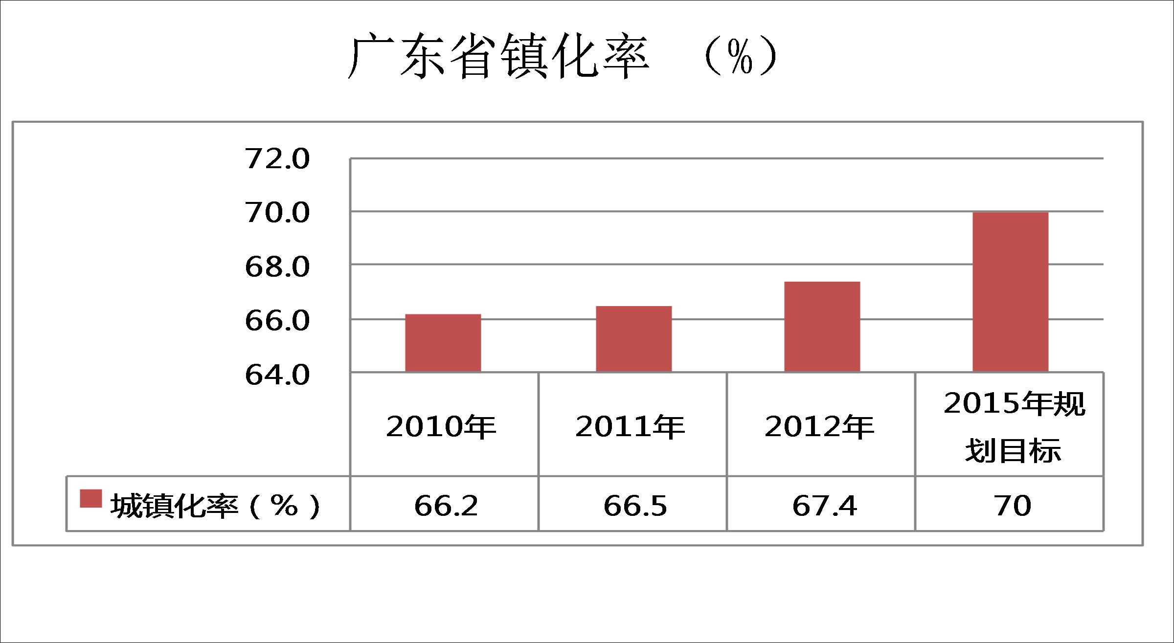 截至2012年末,廣東城鎮化率達到67.4%,居全國前列;其中,珠江三角洲地區的城鎮化率達83.84%,已進入城鎮化發展的成熟階段。