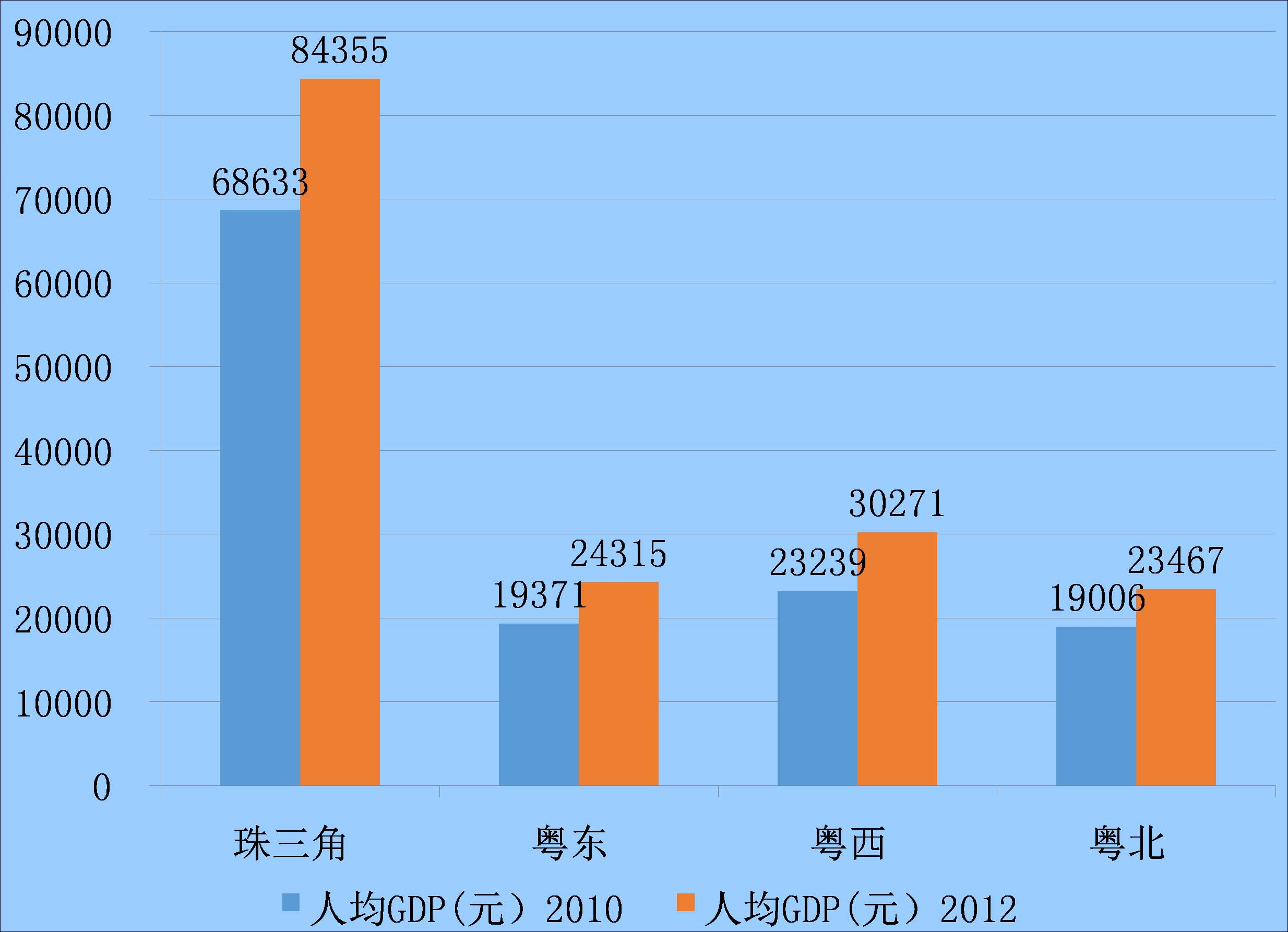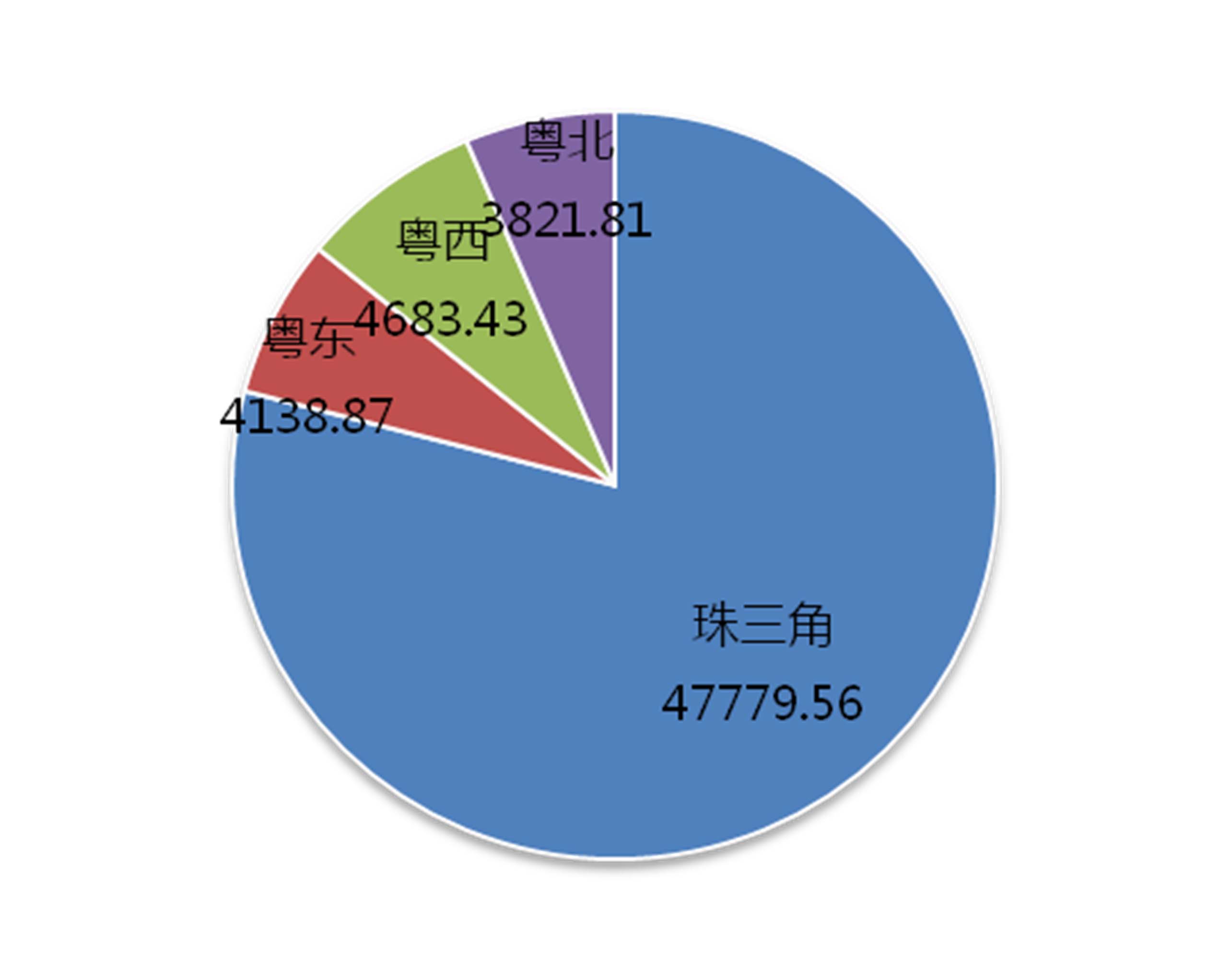 廣東省2012年四大板塊區域生產總值(億元)