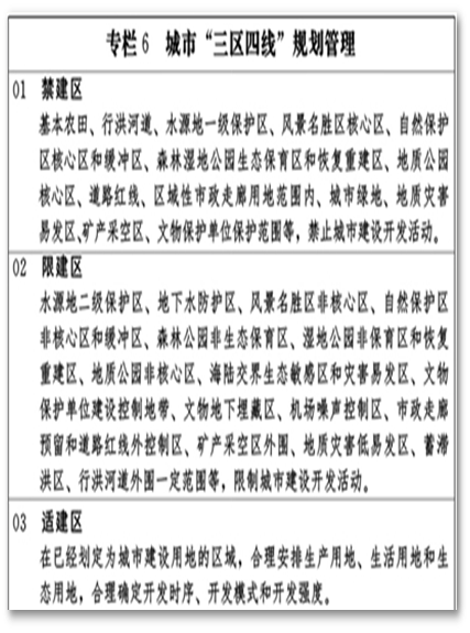 加強城市空間開發利用管制,合理劃定城市“三區四線”,合理確定城市規模、開發邊界、開發強度和保護性空間。