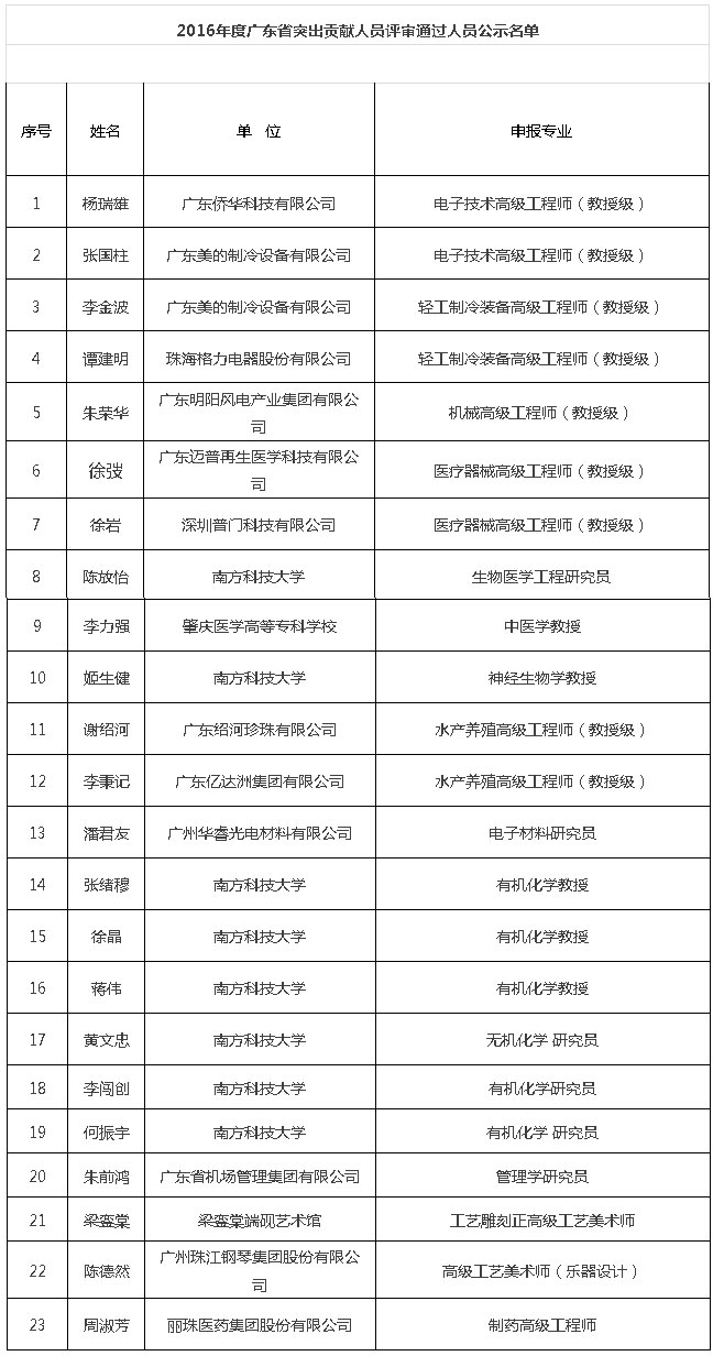 附:2016年度廣東省突出貢獻人員通過人員公示表.xls